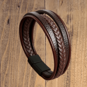 Mens Leather Bracelet Fashion Alloy Magnetic Clasp Multi-Layer Braided Leather Wrap, Black, Brown