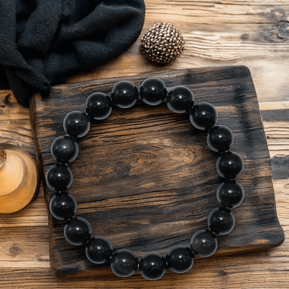HEALING CRYSTAL BRACELET – Black Obsidian crystal bracelet helps relieve stress and anxiety, eliminate nega!ve emo!ons and bring posi!ve energy.