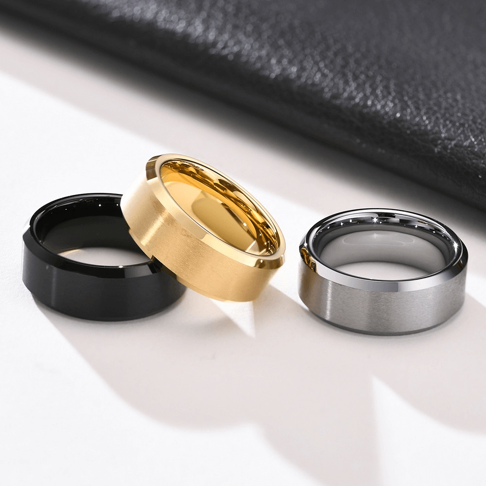 Dual-Tone Design and Unmatched Durability – Elevate your style with this disncve Ring band. Featuring a striking 0.8cm width, its design framed by polished edges creates a bold, modern look. Cra!ed from ultra-strong Stainless Steel, this ring o$ers exceponal scratch resistance, ensuring it looks impeccable for a lifeme of wear