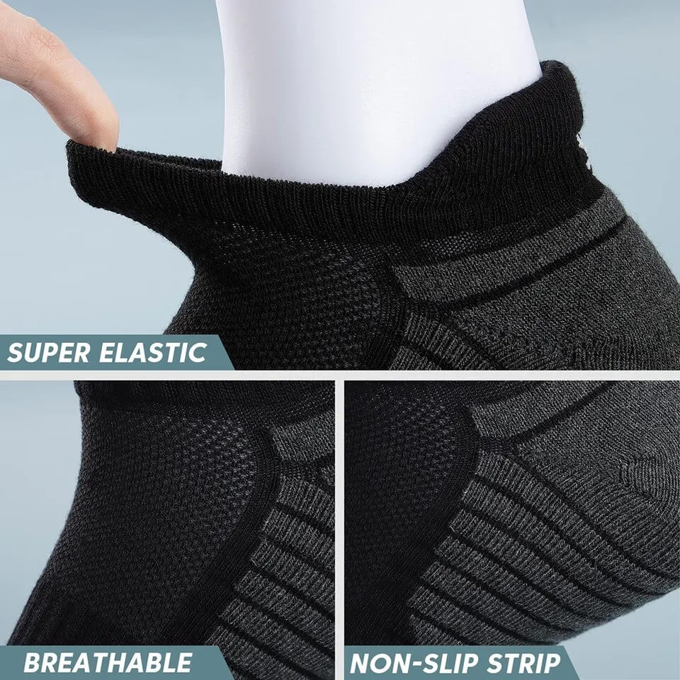 - Cushioned Design Running Socks – These socks are well cushioned on the toes and soles. Reinforced and upgraded heel tab and toe made of good quality cushion have excellent durability supplies extra comfort and protection, fit your ankle, and prevent slipping off.